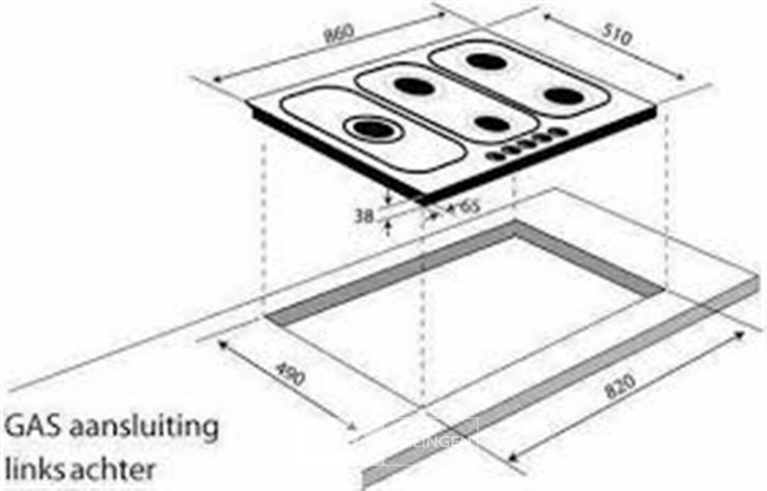 Kookplaat,gas,90 cm,5 branders incl. wokbrander,Inox