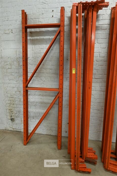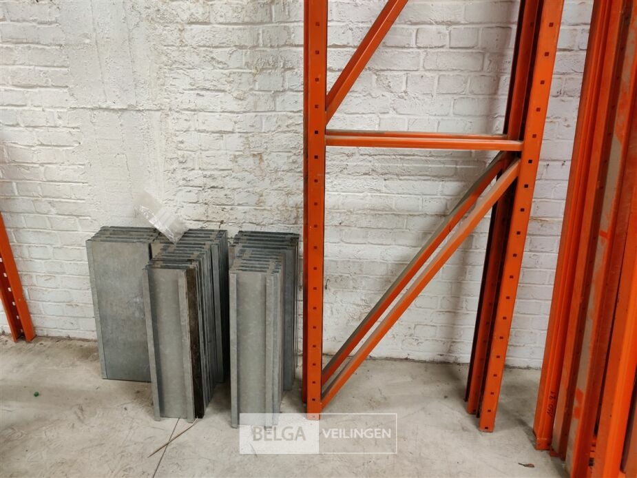 Magazijnrek oranje, 2 staanders 70 cm x 230 cm , 4 liggers zware uitvoering, lengte 230 cm. + 30 galav legborden van 60 x 15 cm
