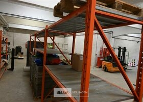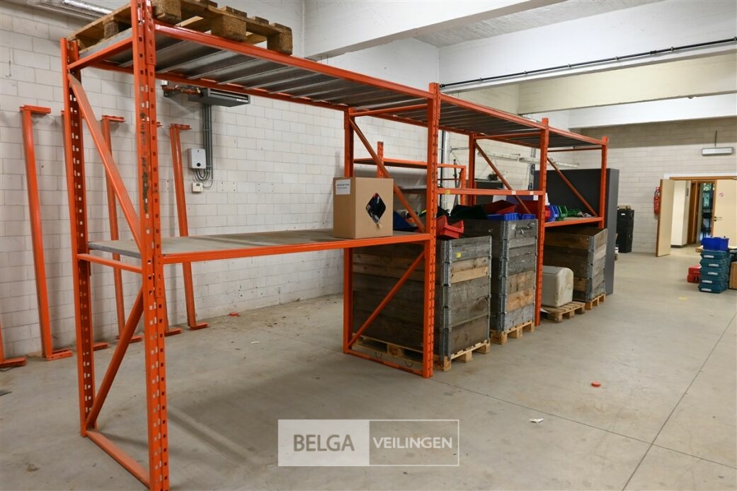 Magazijnrek oranje, 4 staanders 100 cm x 245 cm , 12 liggers zware uitvoering, lengte 230 cm en 60 cm, + 60 galva legborden.