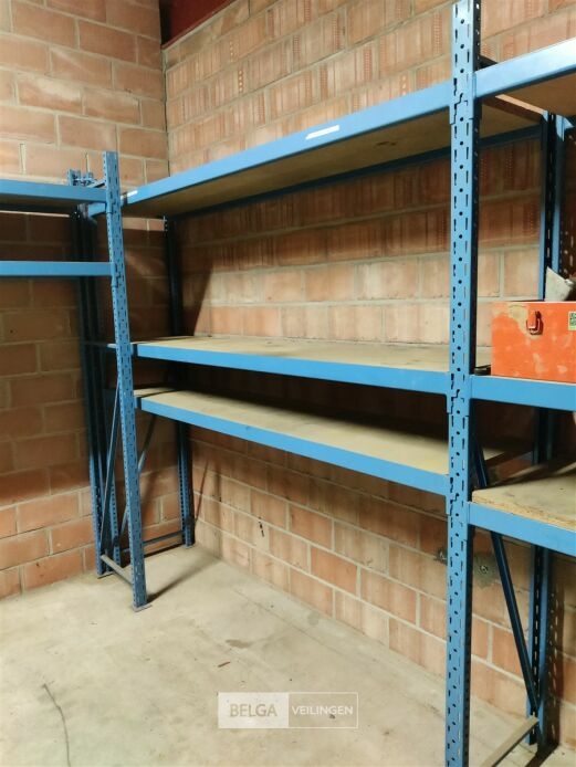 Magazijnrek blauw, 6 staanders 45 x 200, 2 Leggers 125, 8 leggers 205 cm, te demonteren