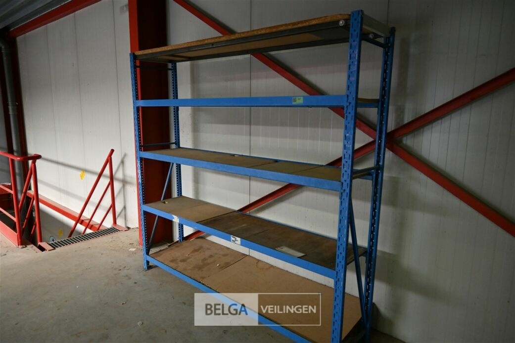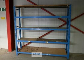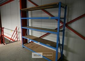 Magazijn rek, Blauw metaal afm 205x45x200 cm, 2 staanders en 5 leggers
