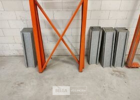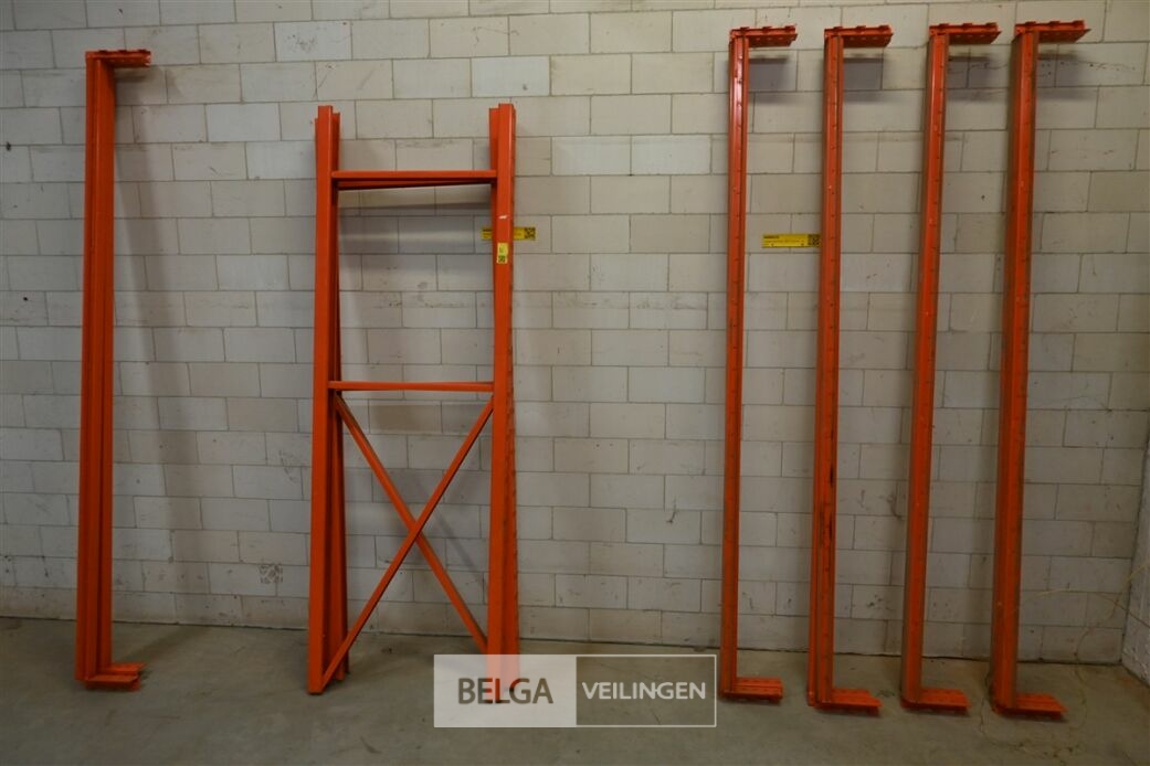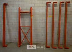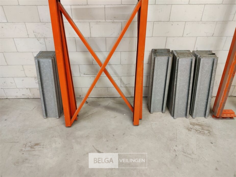 Magazijnrek oranje, 2 staanders 70 cm x 210 cm , 8 liggers zware uitvoering, lengte 230 cm. + 60 galav legborden van 60 x 15 cm