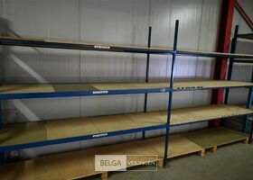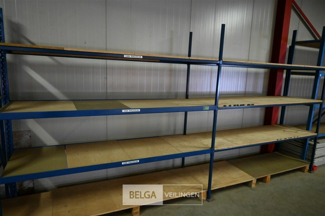 2x Magazijnrekken, Blauw metaal afm 205x65x200 cm, 3 staanders en 6 leggers