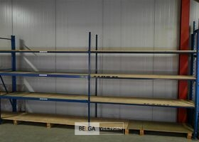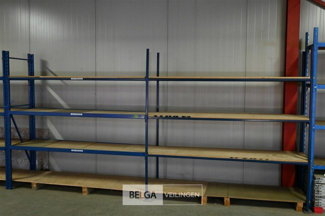 2x Magazijnrekken, Blauw metaal afm 205x65x200 cm, 3 staanders en 6 leggers