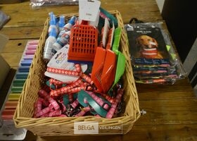 mandje met inhoud partij honden benodigdheden