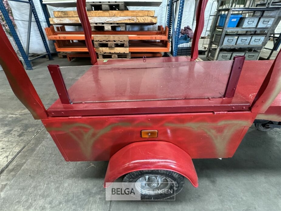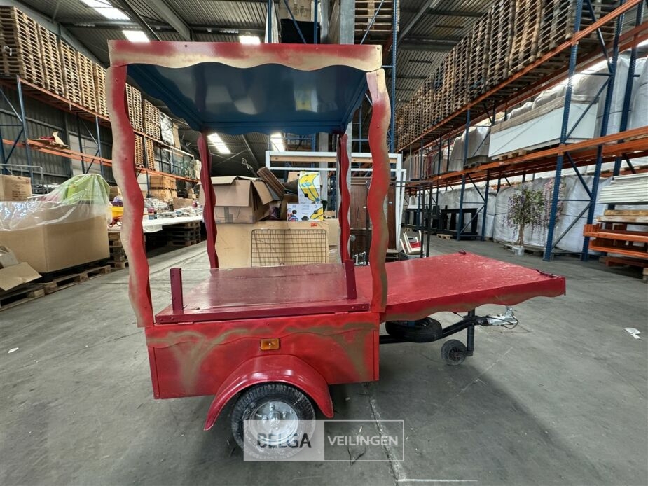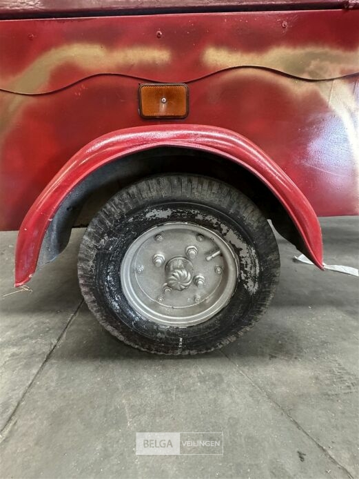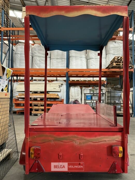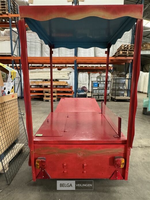 | Opmerkingen: | Rode marktwagen met 1 klep in het laadgedeelte en een inklapbaar verlengstuk voor goederen – aanhangwagen (afm. 106 cm (+113 cm inklapbaar deel) x 100 cm x 119 cm) dissel (afm. 130 cm)– 1 extra wiel aanwezig op dissel |