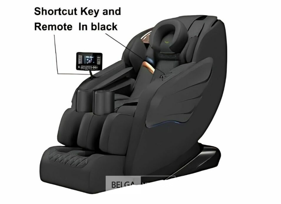 Massagestoel: Opties: 1. Vast puntmodel | 2. Bodywrap airbagmassage | 3. Verwarmingsfunctie op taille en been | 4. Voetrollen | 5. Bluetooth surround sound | 6. Groot led-touchscreen | 7. Zero gravity-functie | 8. U-kussen, hoofdairbags | 9. Kortere onderkant | 10. Knie-airbags | Beschrijving: Voltage: 110-240V, 50-60Hz Vermogen: 120W Bruto- en nettogewicht: 65/55 kg Productafmetingen: 145*74*104 cmVerpakkingsafmetingen: 117*75*106 cm