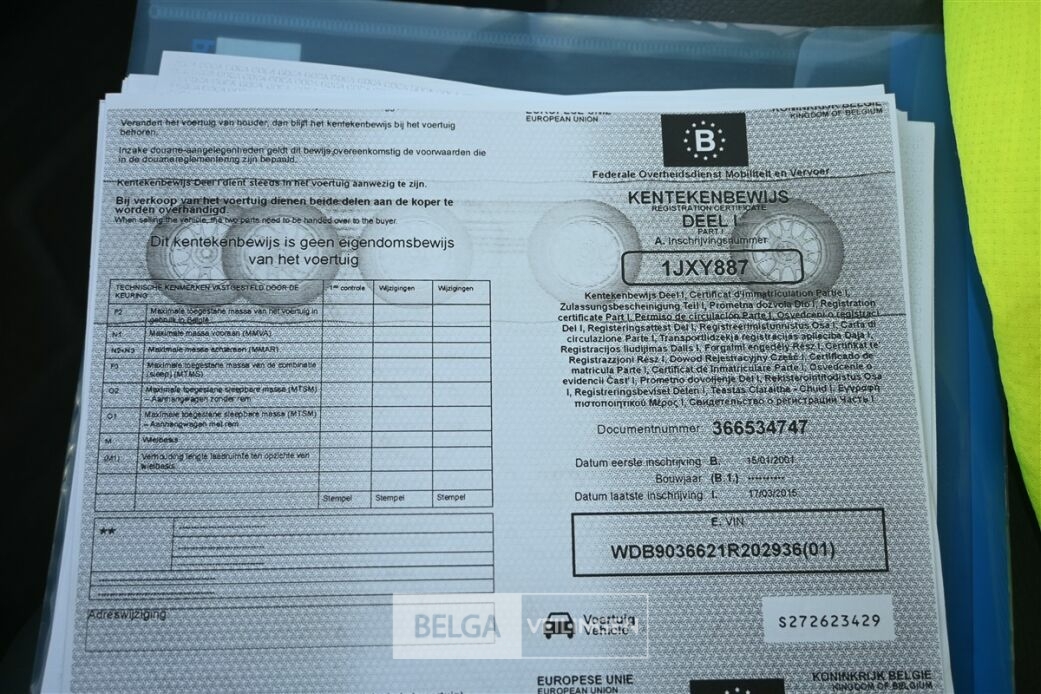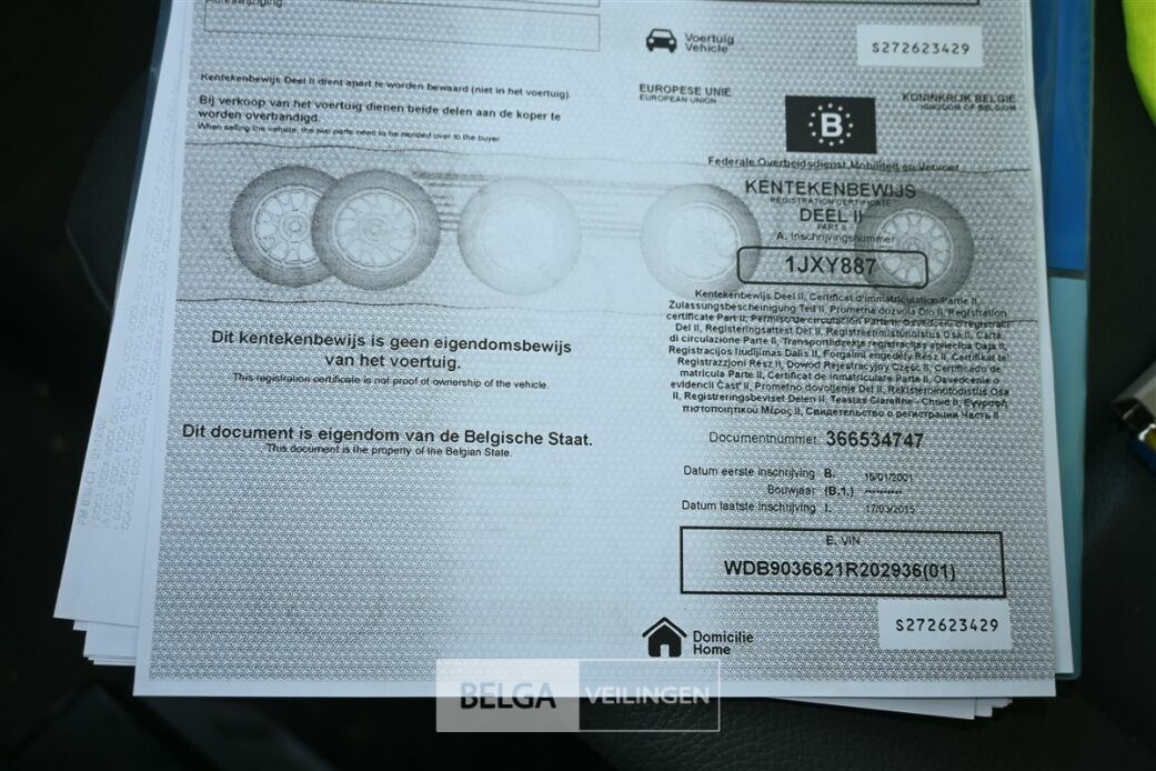 Inschrijvingsbewijs: | Kentekenbewijs deel 1 + 2 |