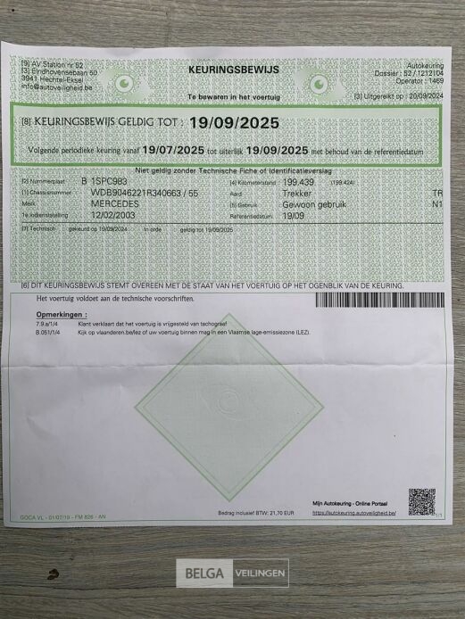 | Keuringsbewijs: | Aanwezig laatste keuring 19/09/25 |