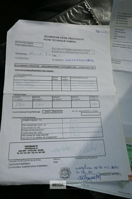 MERCEDES VARIO vrachtwagen met DHOLLANDIA laadklep, chassisnummer WDB6703241N139974, bouwjaar 2010, 40.815km, diesel, euro 5, motorinhoud 4250 cm3, motorvermogen 115kW, dubbele cabine, sleutel en boordpapieren (inschrijvingsbewijs, gelijkvormigheidsattest, keuringsbewijs en identificatieverslag) aanwezig, keuringsbewijs is nog geldig tot 21/5/2026, start en rijdt, dit voertuig kan geïnspecteerd worden tijdens de kijkdag, dit voertuig heeft mogelijk een platte batterij, de koper dient zelf te voorzien in startmiddelen