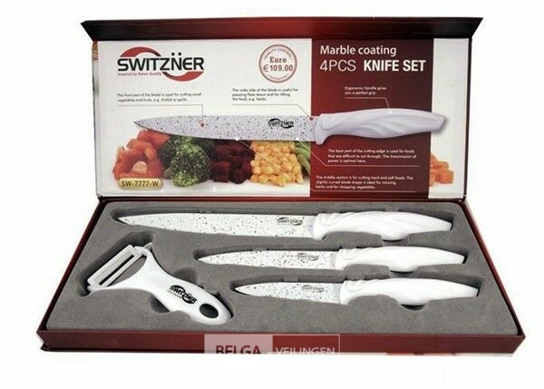 Switzner 4 delige keukenmes set- 3messen en keramische dunschiller