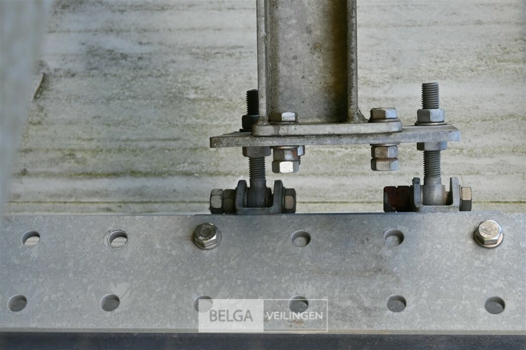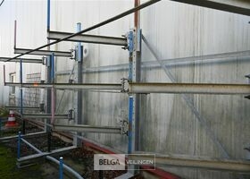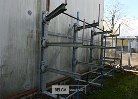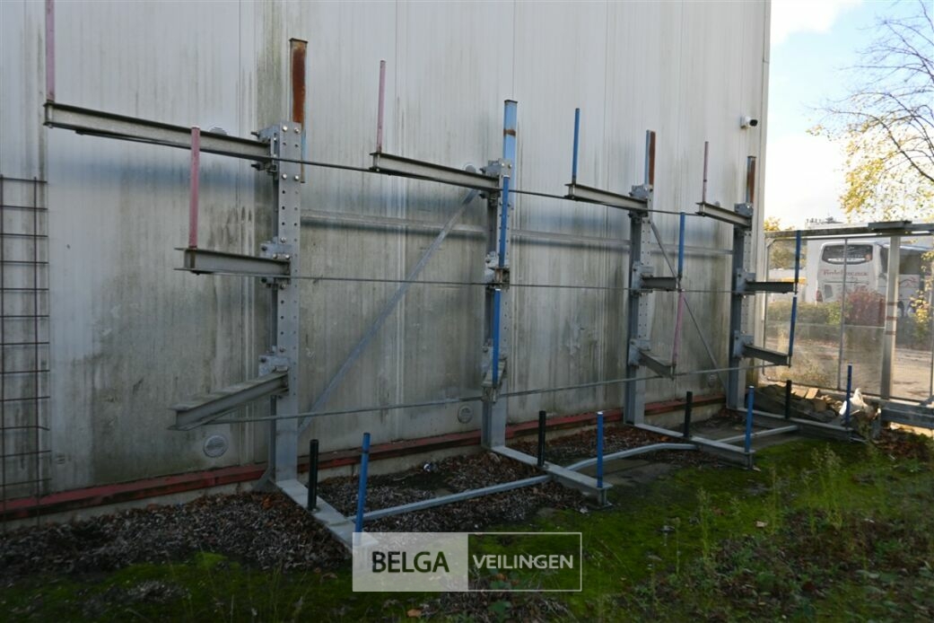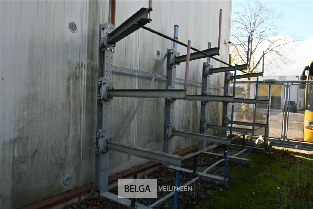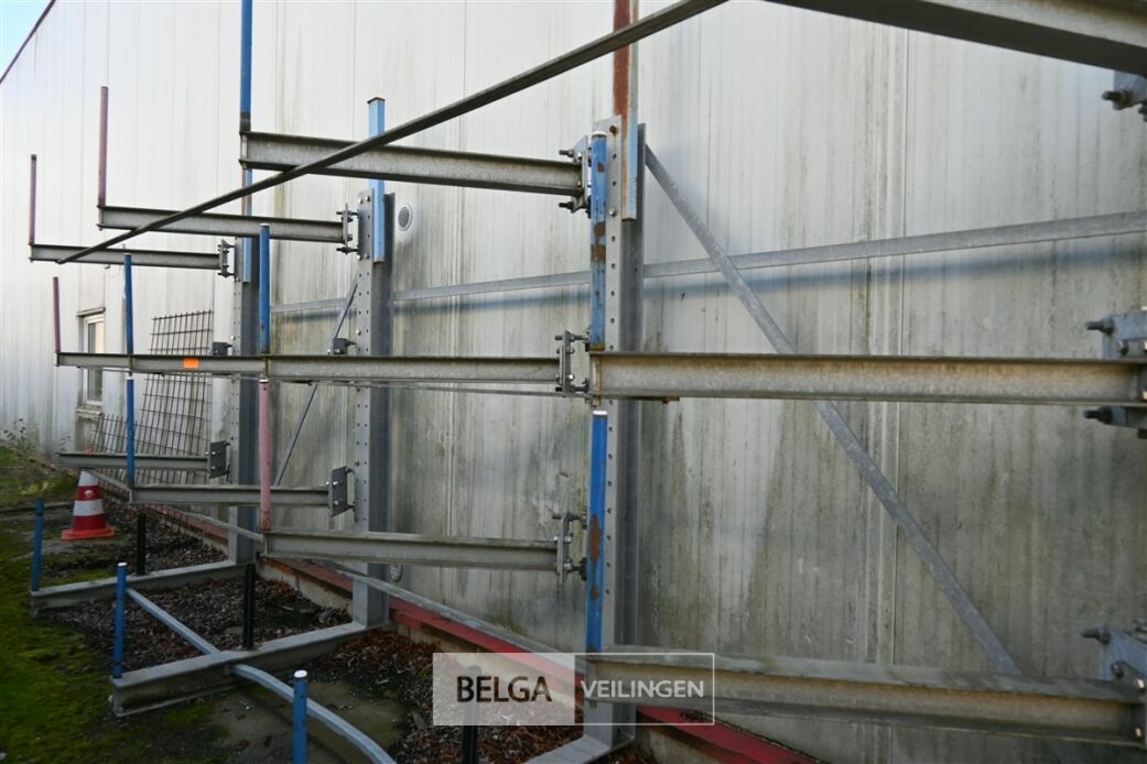 Metalen gegalvaniseerd rek, buizenrek met 3 draaibare armen en 1 vast. Afm 180x135x310 cm
