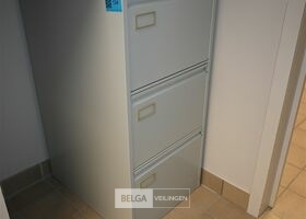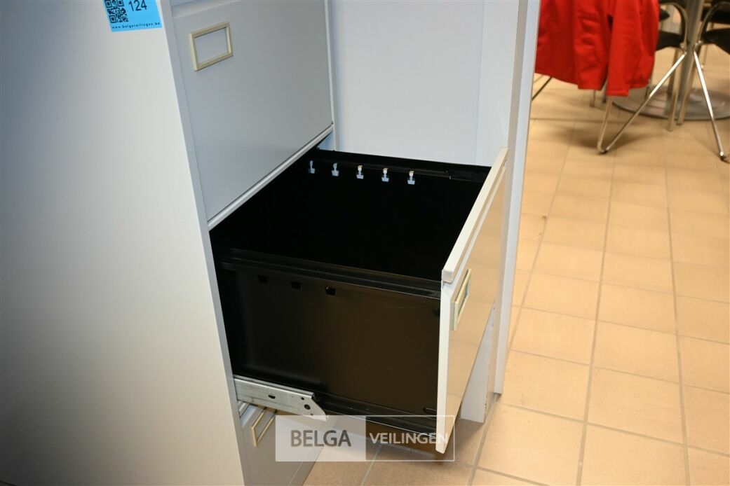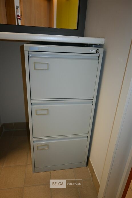 Metalen dossierkast met 3 lades, afm 62x47x100cm. Opgelet! Dit lot bevindt zich op de eerste verdieping en dient door de koper zelf naar beneden te worden gebracht.