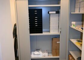 Metalen dossierkast met roldeuren, 160x45x198cm, zonder de inhoud op de foto's