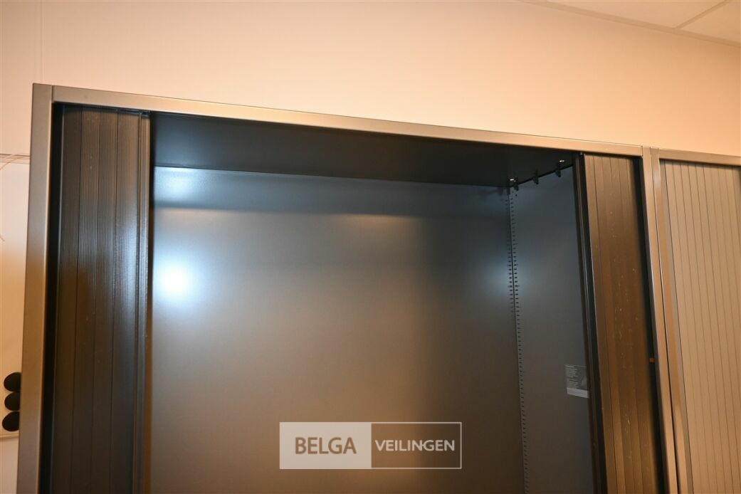 Metalen dossierkast met kapotte roldeuren, 120x45x195cm