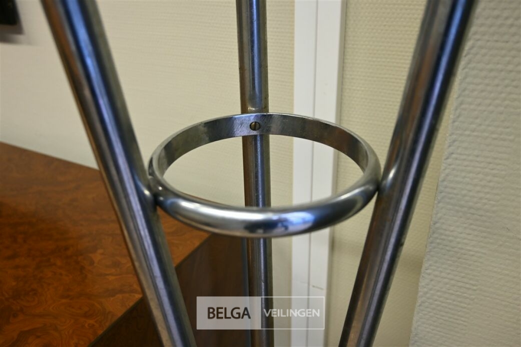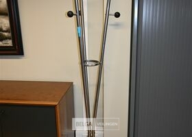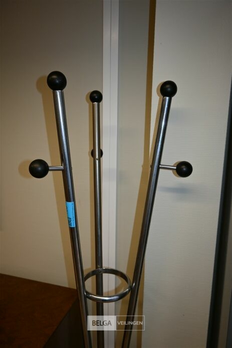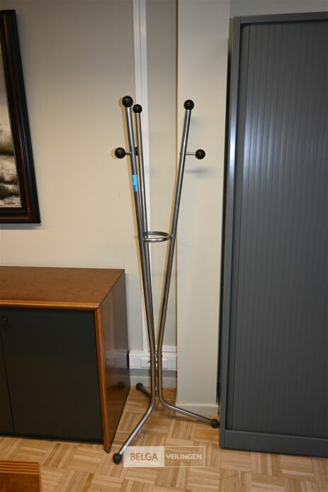Metalen kapstok, hoogte 170cm. Opgelet! Dit lot bevindt zich op de eerste verdieping en dient door de koper zelf naar beneden te worden gebracht.