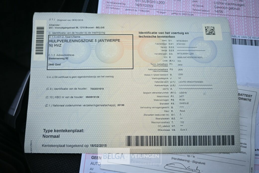| Inschrijvingsbewijs: | Kentekenbewijs deel 1 + ? |