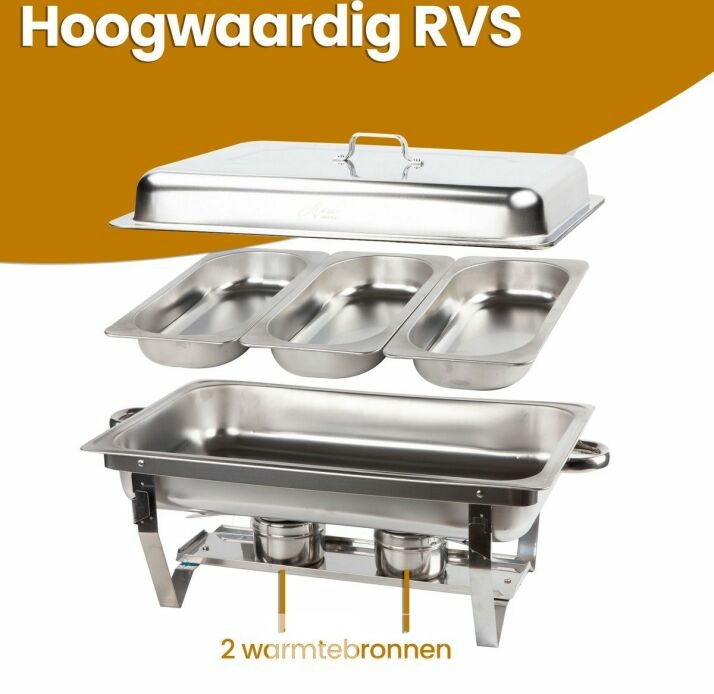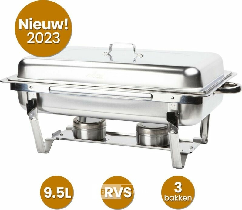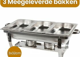 Alora Chafing Dish chrome 3 bakken -Horecakwaliteit -Rvs -nieuw in doos