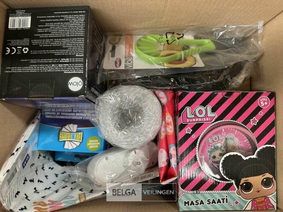Mystery Box inhoud van doos diverse consumenten goederen varierend van smart toestellen en of toebehoren tot speelgoed etc, de inhoud van de box word verkocht als niet getest, met of zonder schade aan de toestellen en verpakking, werkend of niet werkend een mogelijkheid deze te inspecteren is er op de kijkdag.