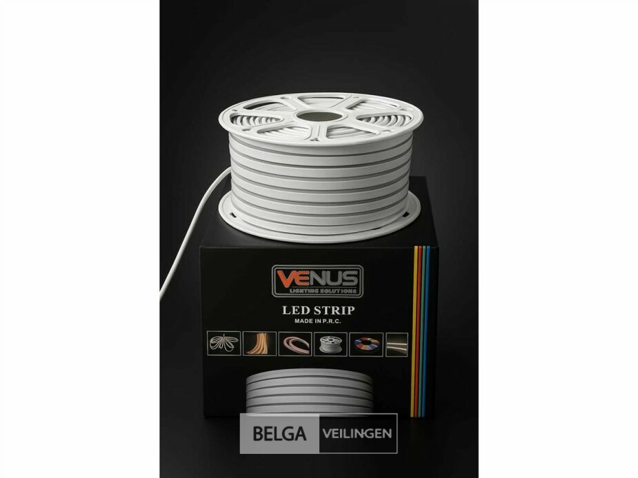 2 x 50 meter Neon LED Strip - Geschikt voor gebruik binnen en buiten - IP-waarde: IP65 (dicht) - Voltage: 220-240 V (50/60 Hz) - Lengte: 50 m- Type LED: SMD 2835 - Vermogen: 8W per meter - Aantal LED's: 120 per meter - Kleur: zwart-wit rood - Dubbelzijdig: verlichting aan beide zijden - Lichtopbrengst: 80 lumen per meter - Beamingshoek: 120° - Levensduur: 30.000 heUres - Inclusief 3 gratis stopcontacten - Direct klaar voor gebruik