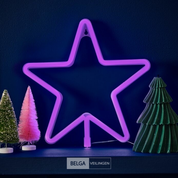Ginger Ray Neon verlichting Star op batterij 3xaa paars 28 cm -knappe blikvanger op alle feesten