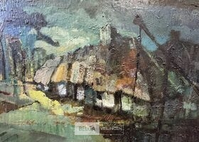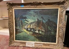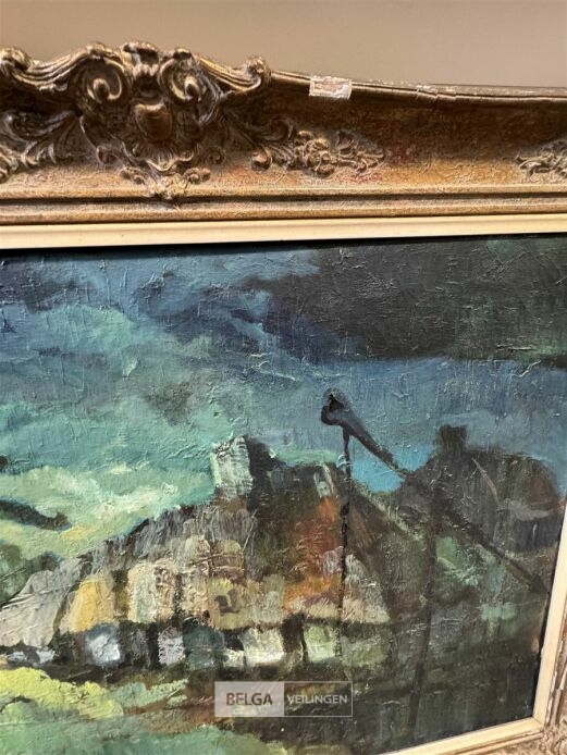 Olieverf schilderij – afm ±120 x 100 cm – beschadigingen aan kader