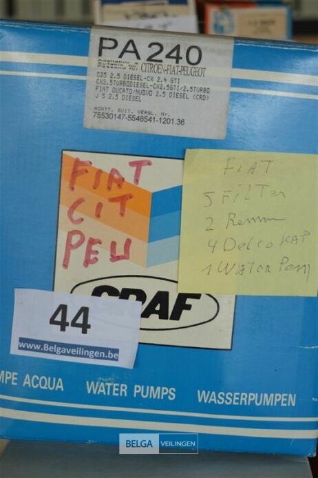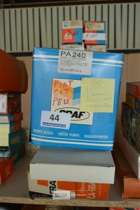 onderdelen Fiat: 5xfilter,2x remmen,4x delcokap,1 waterpomp