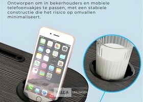 Desktopkaartsleuf en bekerhouder: in de desktopkaartsleuf kunt u eenvoudig uw mobiele telefoon, tablet, boeken en tijdschriften opbergen. De bekerhouder zorgt ervoor dat je drankje altijd binnen handbereik is, wat het gemak van je activiteiten vergroot.