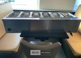 Opzet Bain-Marie, merk niet gekend, biedt ruimte voor 6 x GN 1/2 Container, inox, 230 V . L. 110 x D 42 x H 22 cm. Verdere technische gegevens onbekend. Het aangeboden kavel werd niet onderzocht op gebreken en niet getest op werking. Maak gebruik van het kijkmoment om u te voorzien van de nodige indrukken.