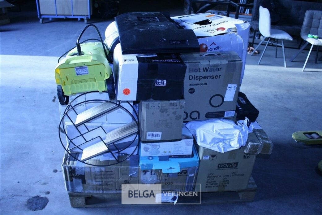 Pallet ongecontroleerde retourgoederen - te inspecteren tijdens kijkdag