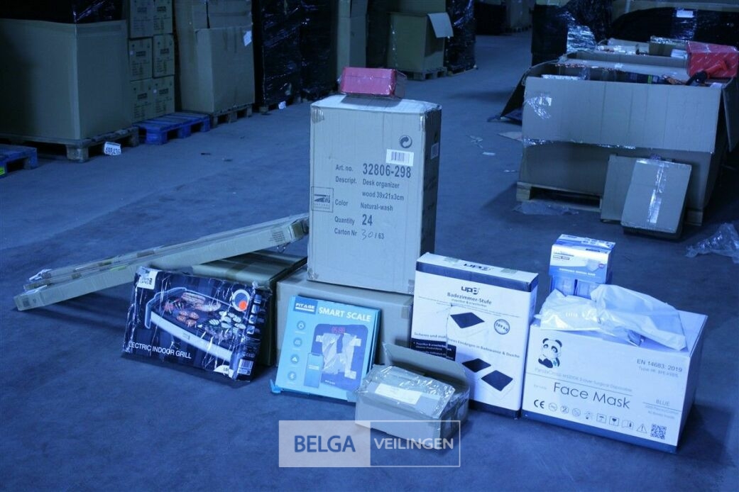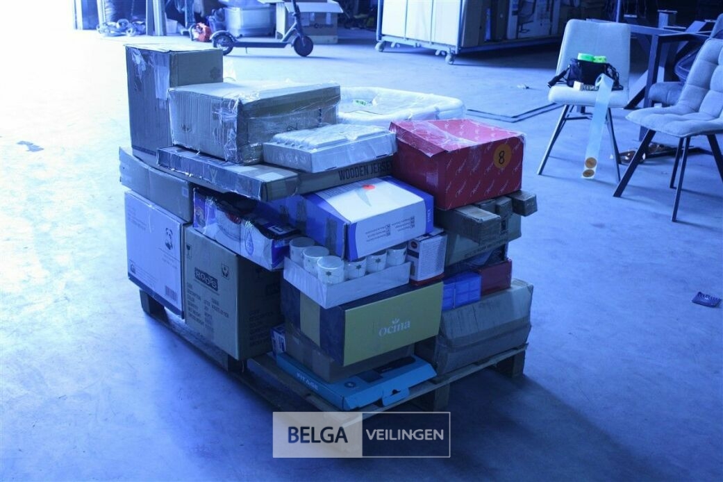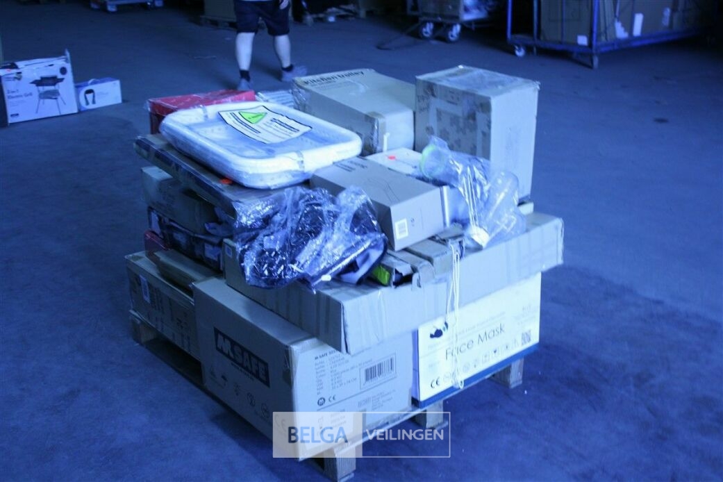 Pallet ongecontroleerde retourgoederen - te inspecteren tijdens kijkdag