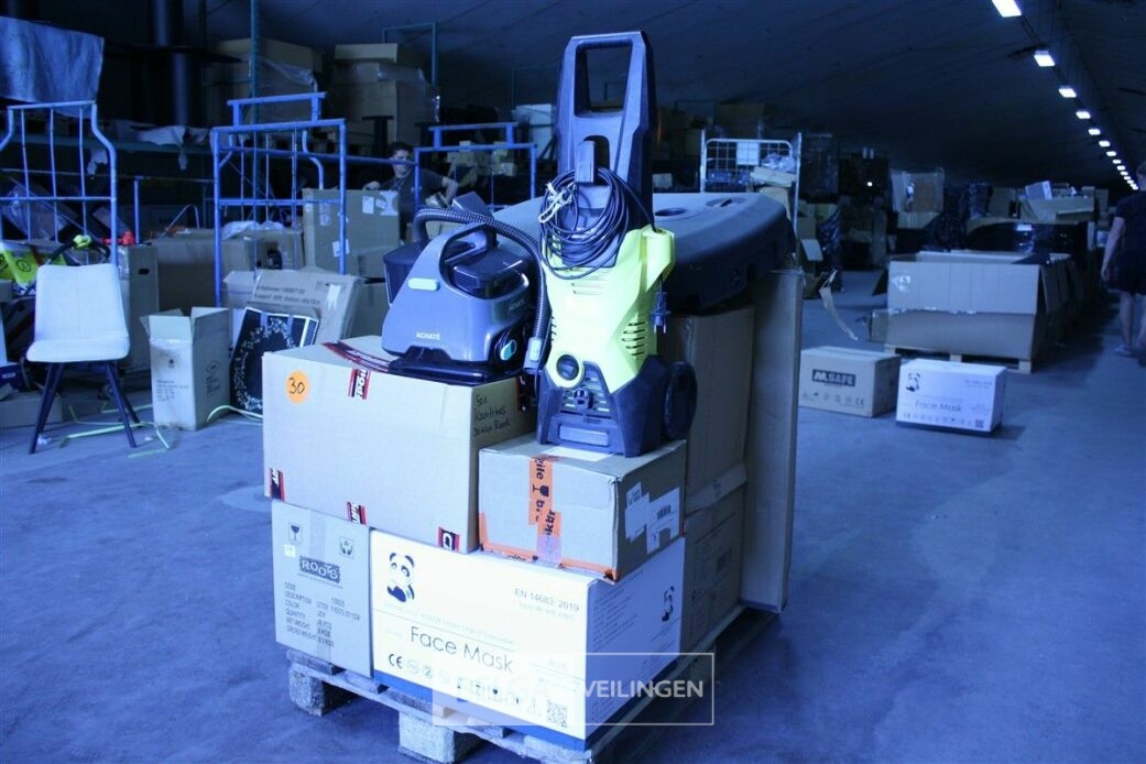 Pallet ongecontroleerde retourgoederen - te inspecteren tijdens kijkdag