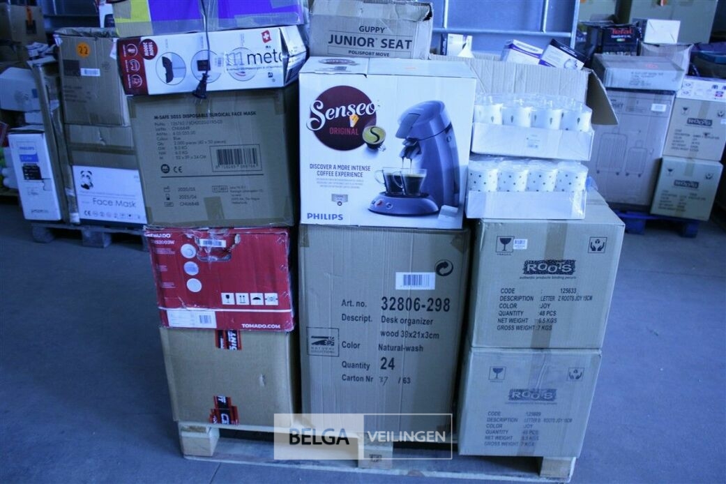 Pallet ongecontroleerde retourgoederen - te inspecteren tijdens kijkdag