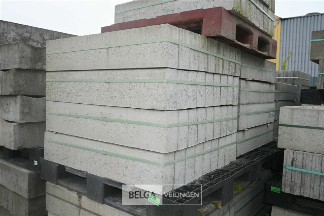 Circa 9 paletten betonnen boordstenen waarvan een deel met tand en groef, 20x10x100cm, OPGELET! De koper dient ter plaatse 20 euro waarborg per kunststof palet te betalen!!