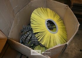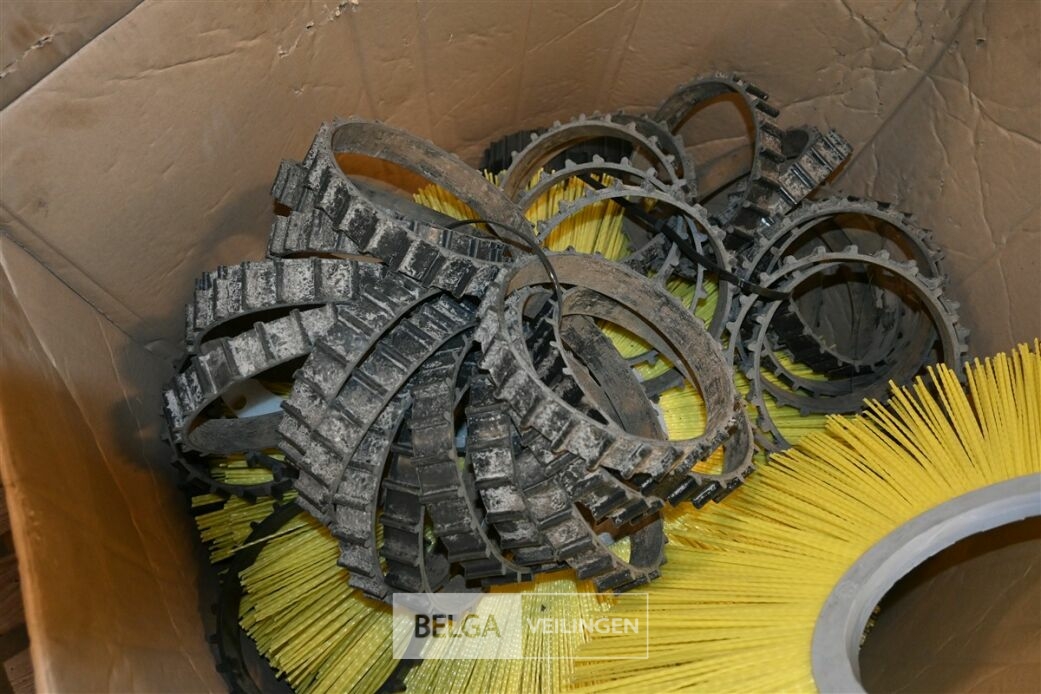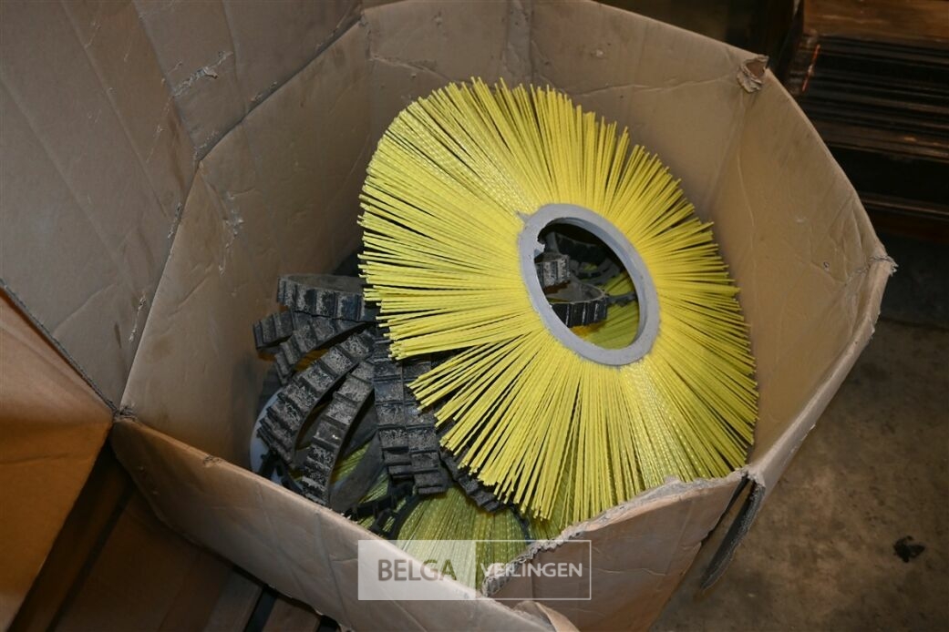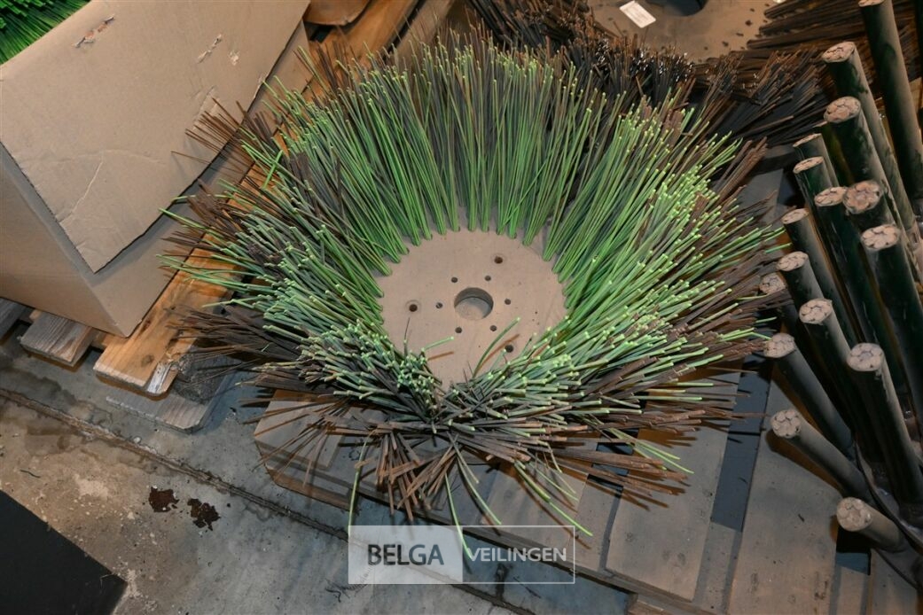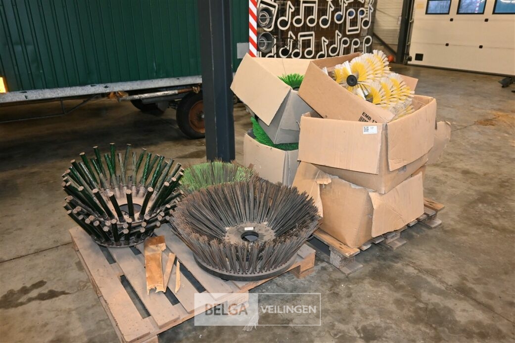 Partij borstels o.a. : houtborstels, schijfborstels en veegborstelringen, diverse Ø ± 50, 60 en 70 cm, L ± 30 cm pallet inbegrepen