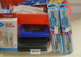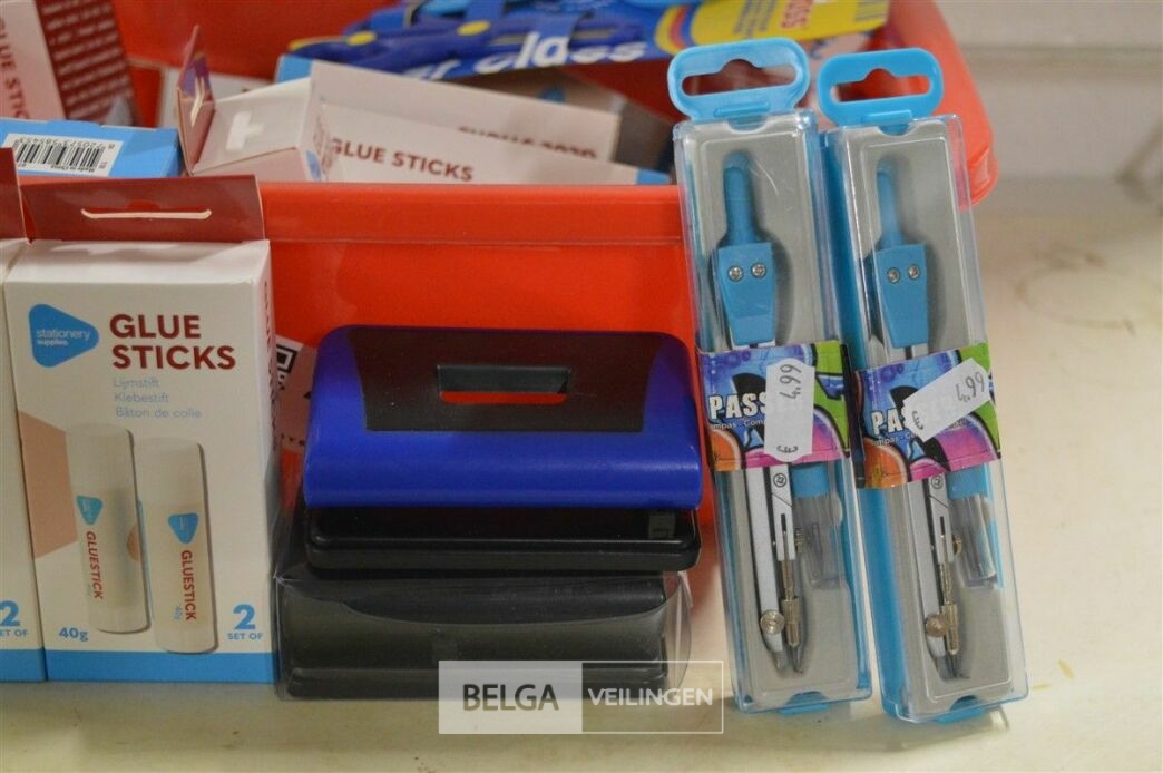 partij div kantoorbenodigdheden( passer, lijm, perforartor)
