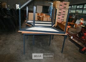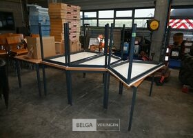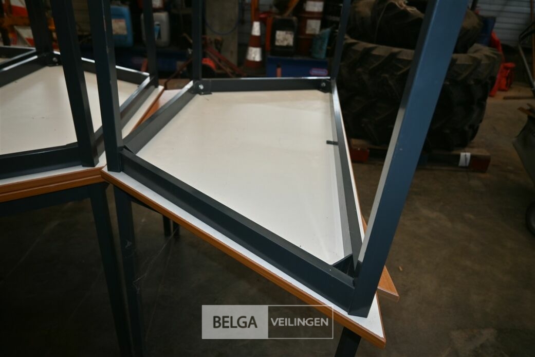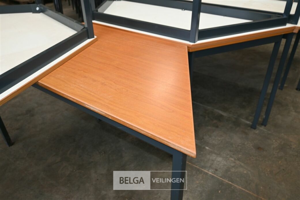 ± 7 diverse tafels, 3 x trapeziumvormige tafel (140x60x73cm), 2 x rechthoekig (140x70x71cm) en 1 x rechthoekig (160x80x74cm)