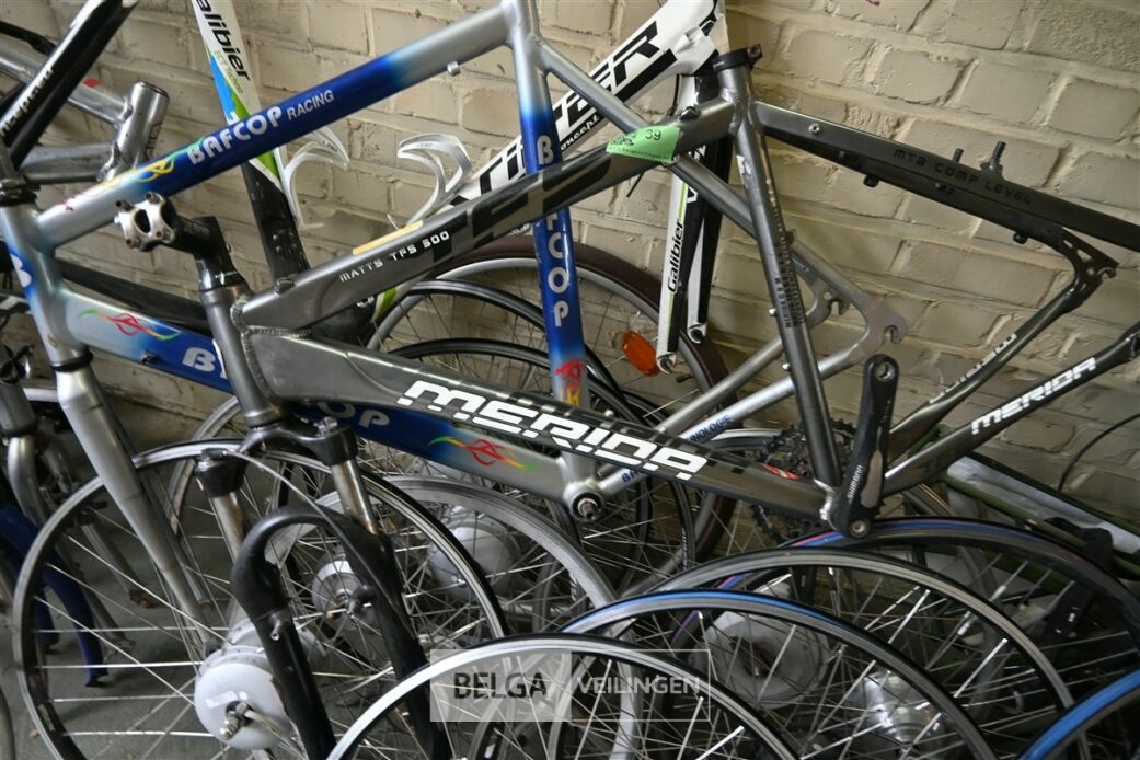 Circa 15 fietskaders (o.a. MERIDA en BAFCOP) en 20 fietswielen