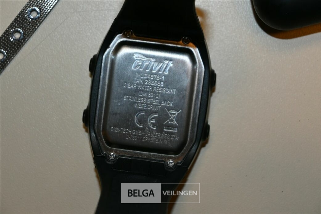 Partij horloges + divers met o.a. uurwerken, CRIVIT sporthorloge, armband en Z bluetooth oortjes