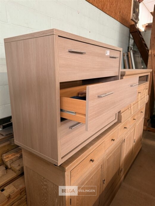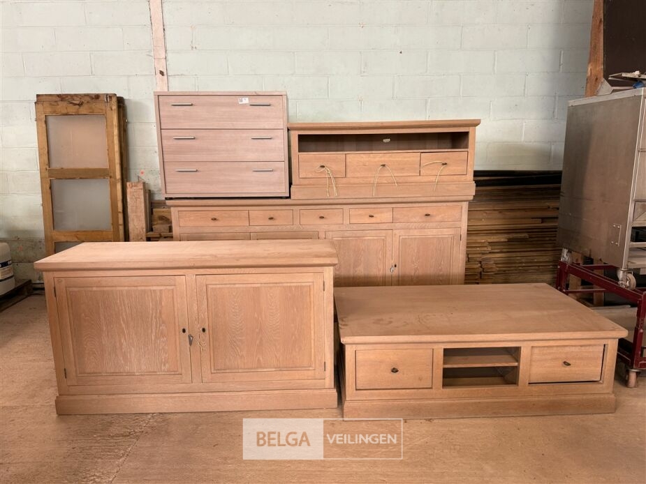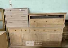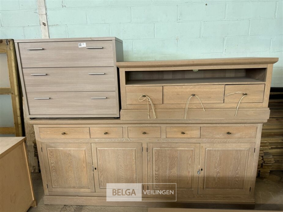 5 houten kasten, verschillende afmetingen, de afmetingen van de dressoir : 250x50x100cm
