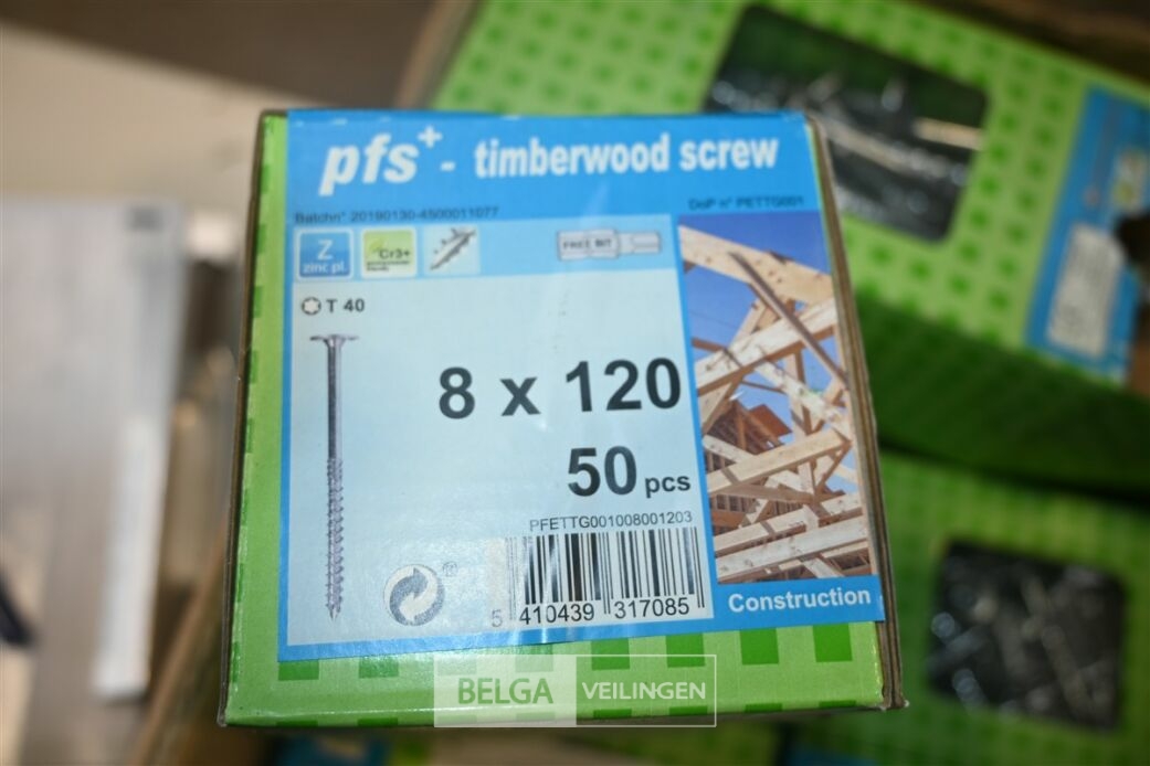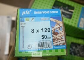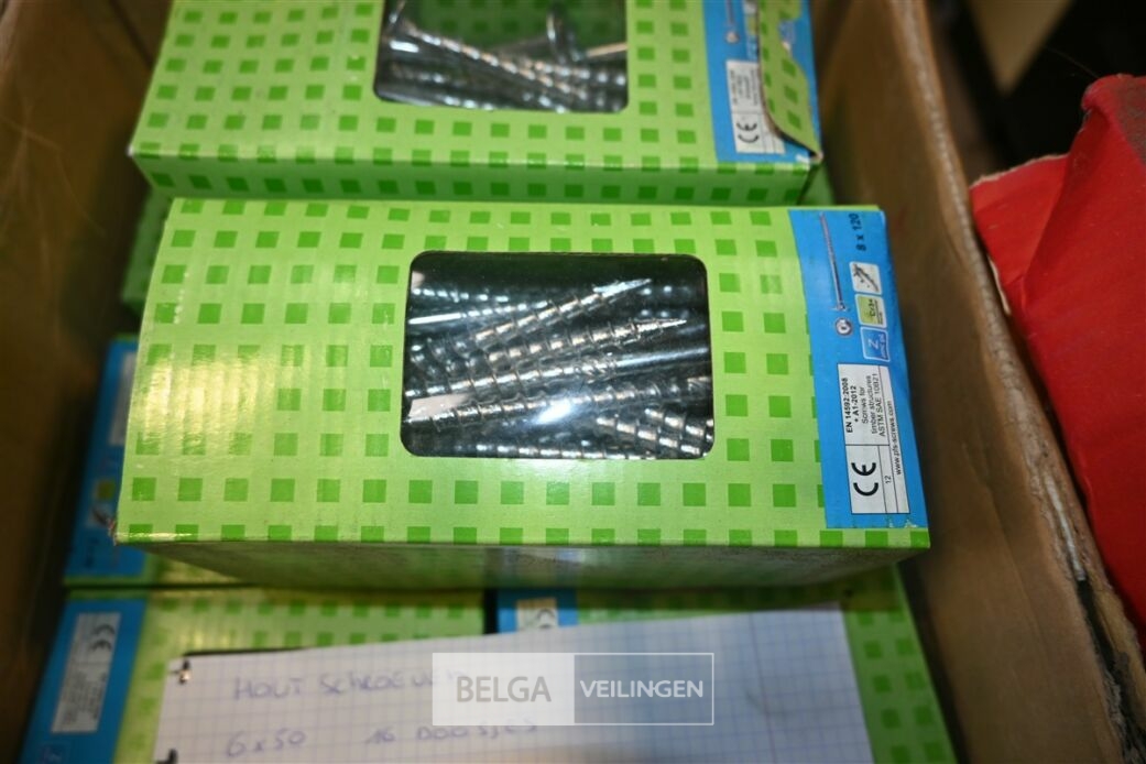 Partij houtschroeven met o.a. 16 dozen 6x50 en 2 dozen 8x120