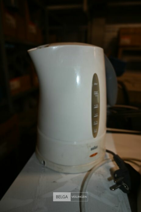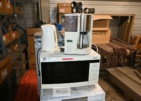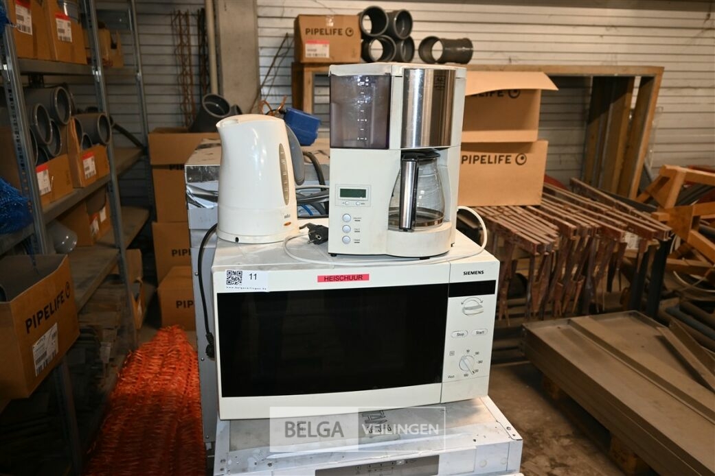 Partij huishoud varia, met o.a. vuilbak, prikbord, waterkoker en koffiezetapparaat