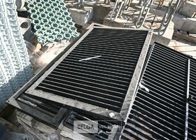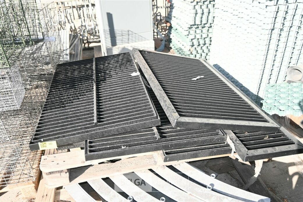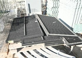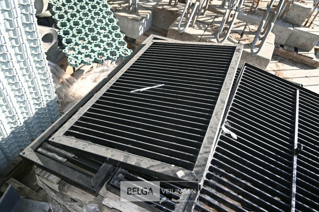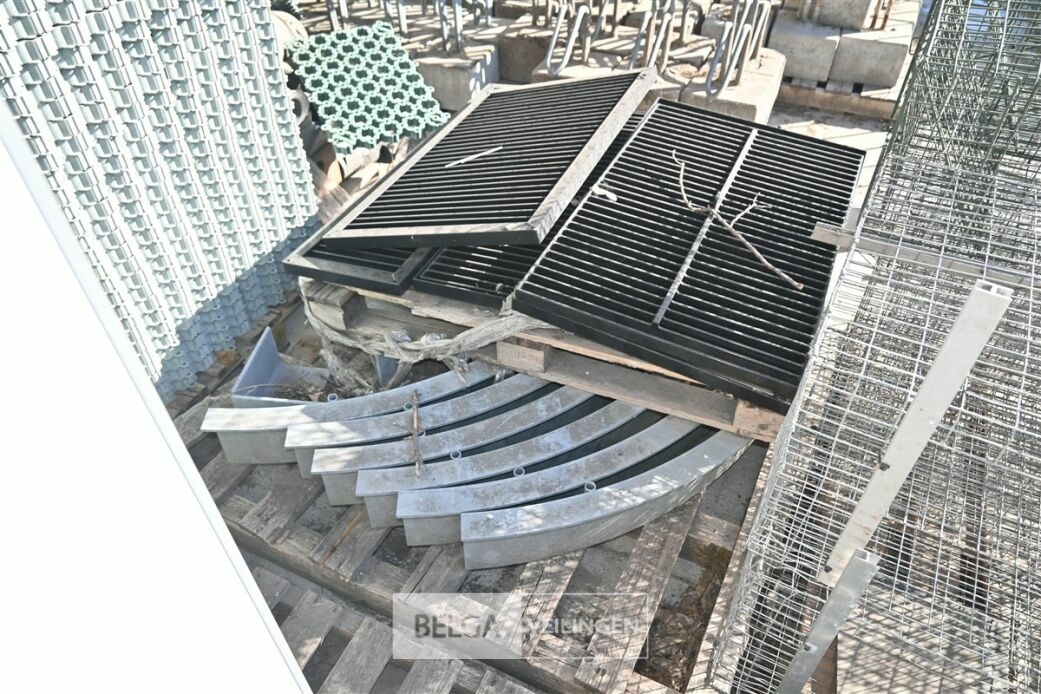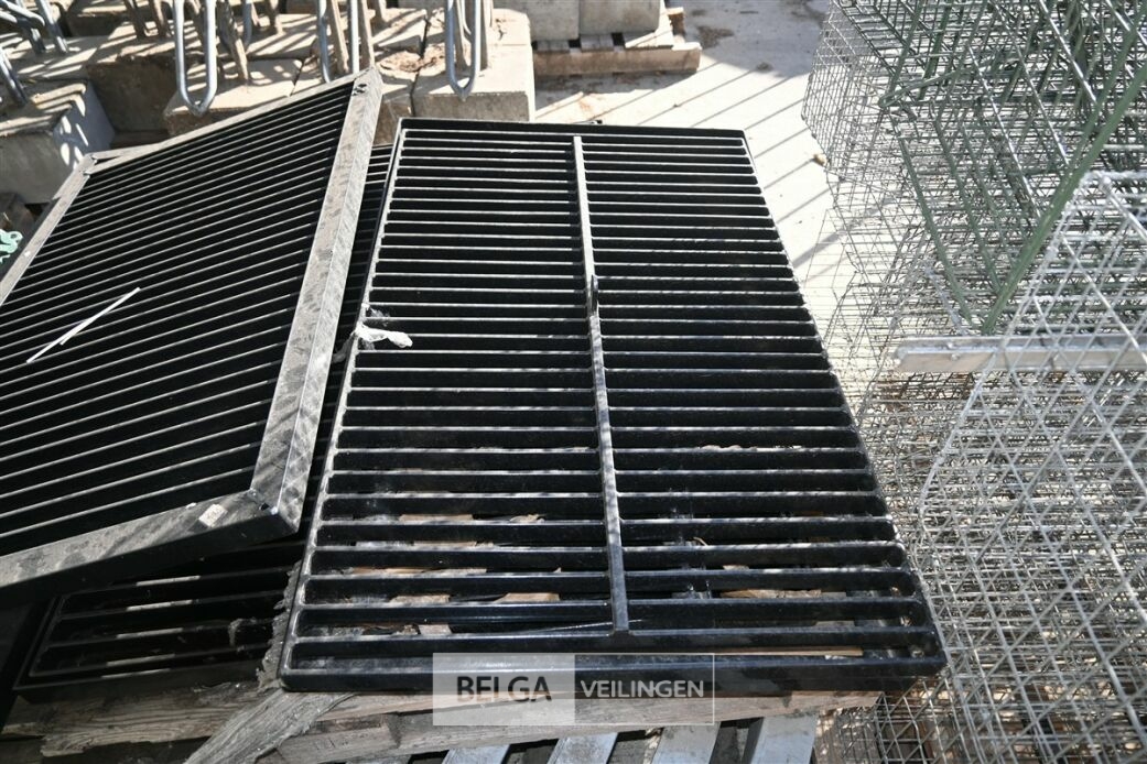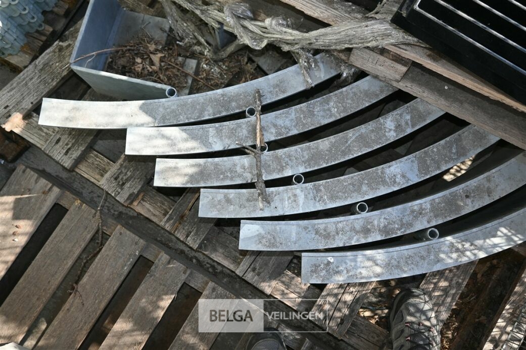 Circa 4 zware metalen roosters (10x60cm) en circa 6 metalen bogen