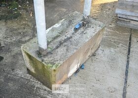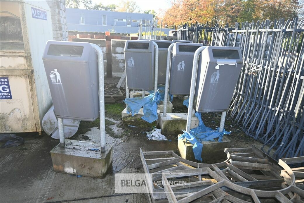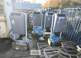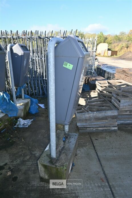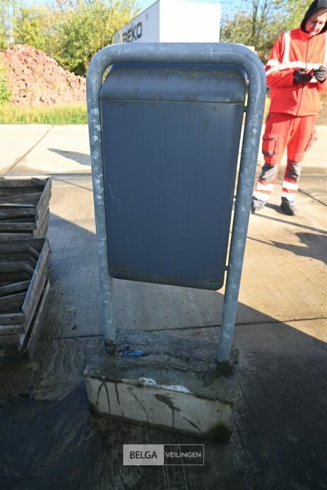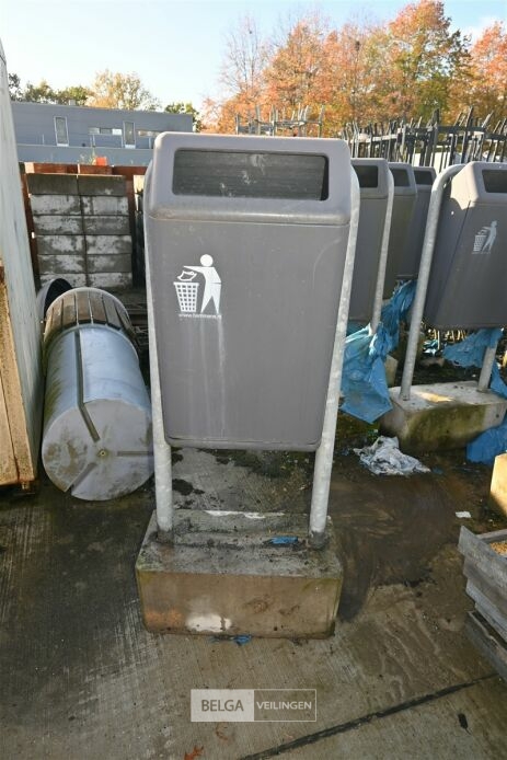 Circa 7 metalen vuilnisbakken met betonnen voet, 60x30x140cm
