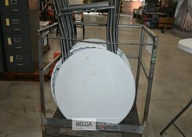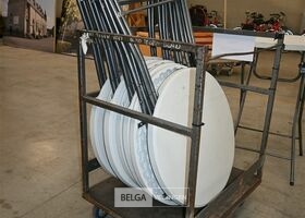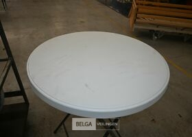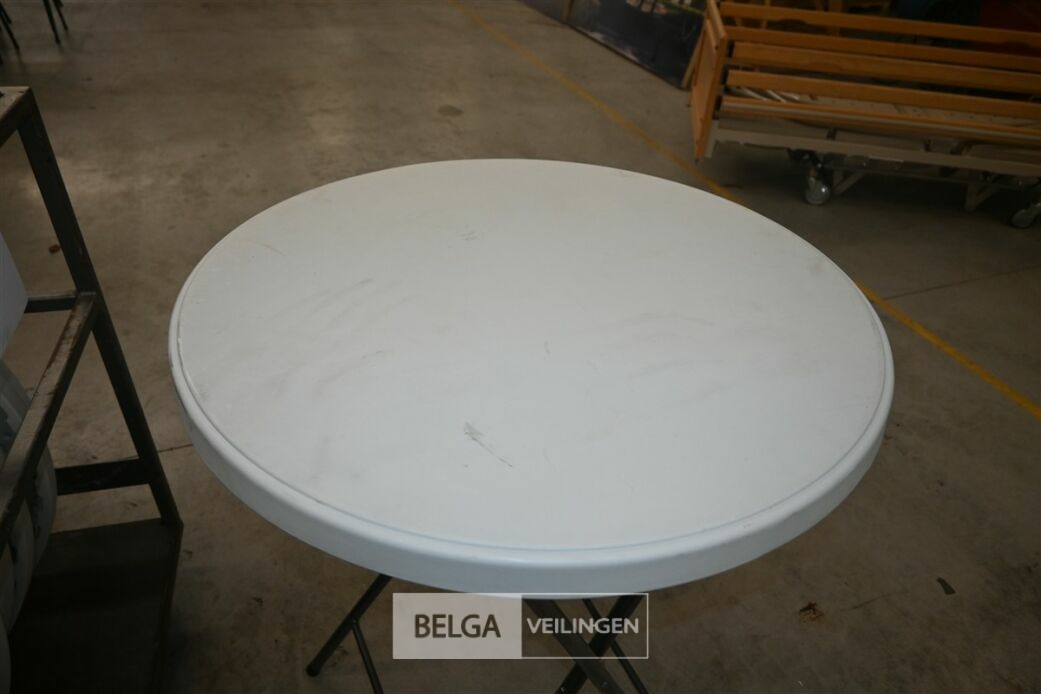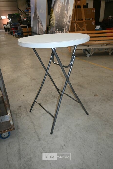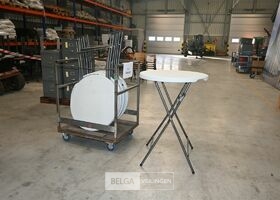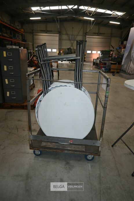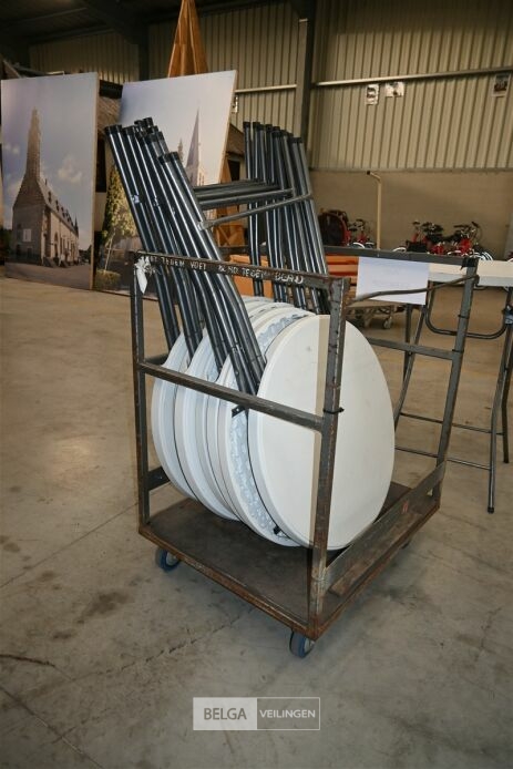 Circa 8 partytafels (diameter 80cm, hoogte 110cm) met kar