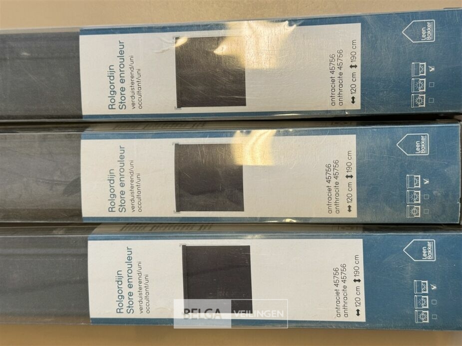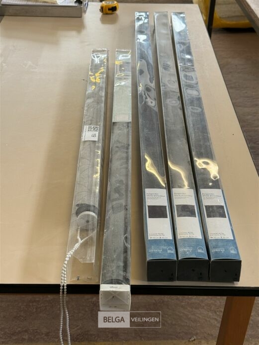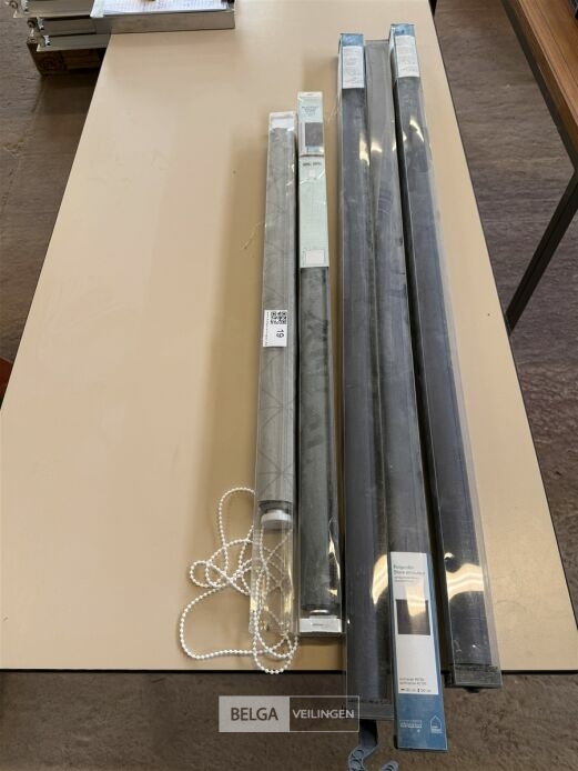 Circa 5 rolgordijnen, 3 stuks met breedte 120cm en lengte 190cm, 1 stuk met breedt 90cm en lengte 210cm en 1 stuk met breedte 80cm