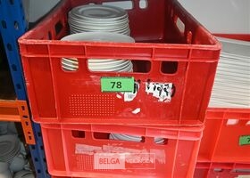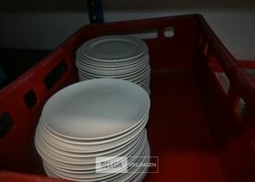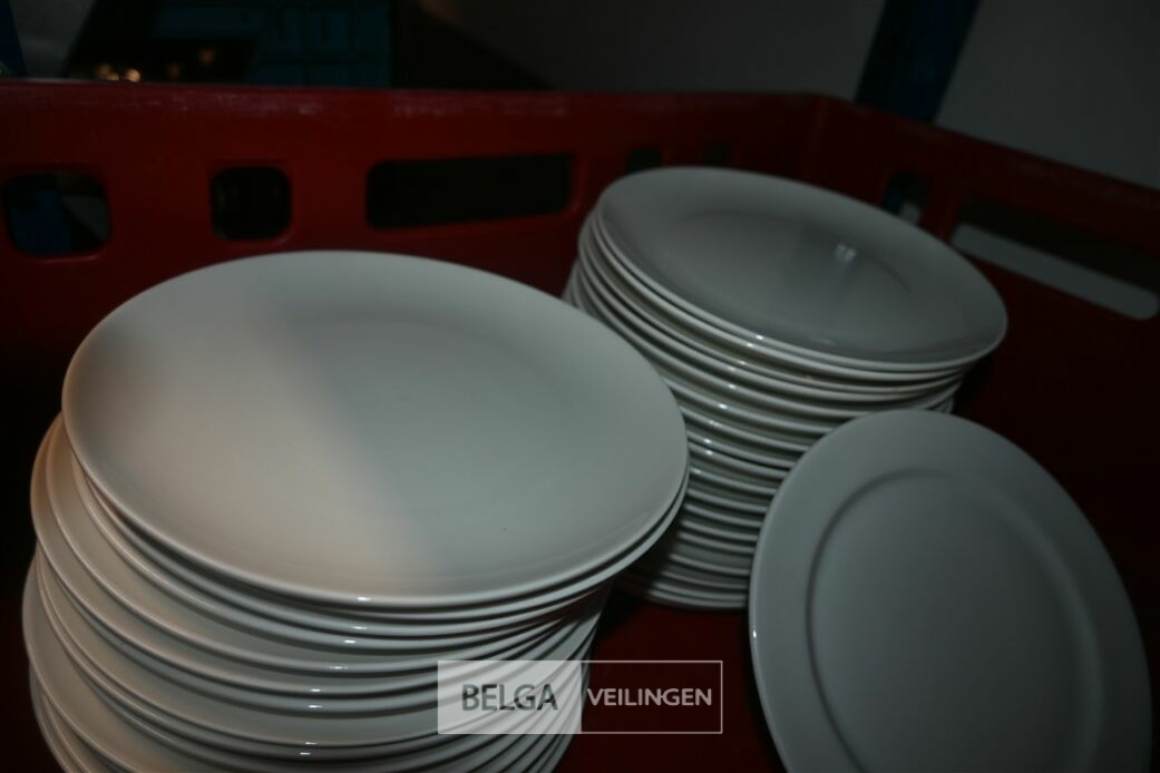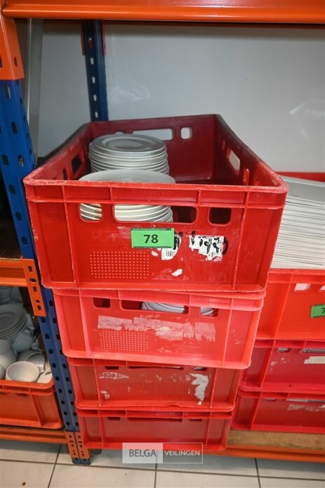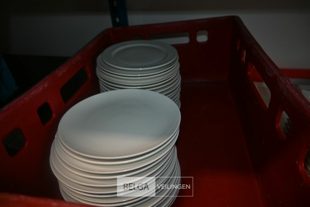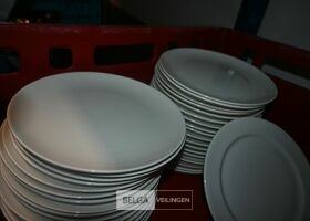 Circa 300 ronde bordjes, exclusief de rode bakken (mee te nemen mits 8 euro per rode bak te betalen bij ophaling)