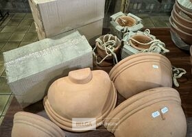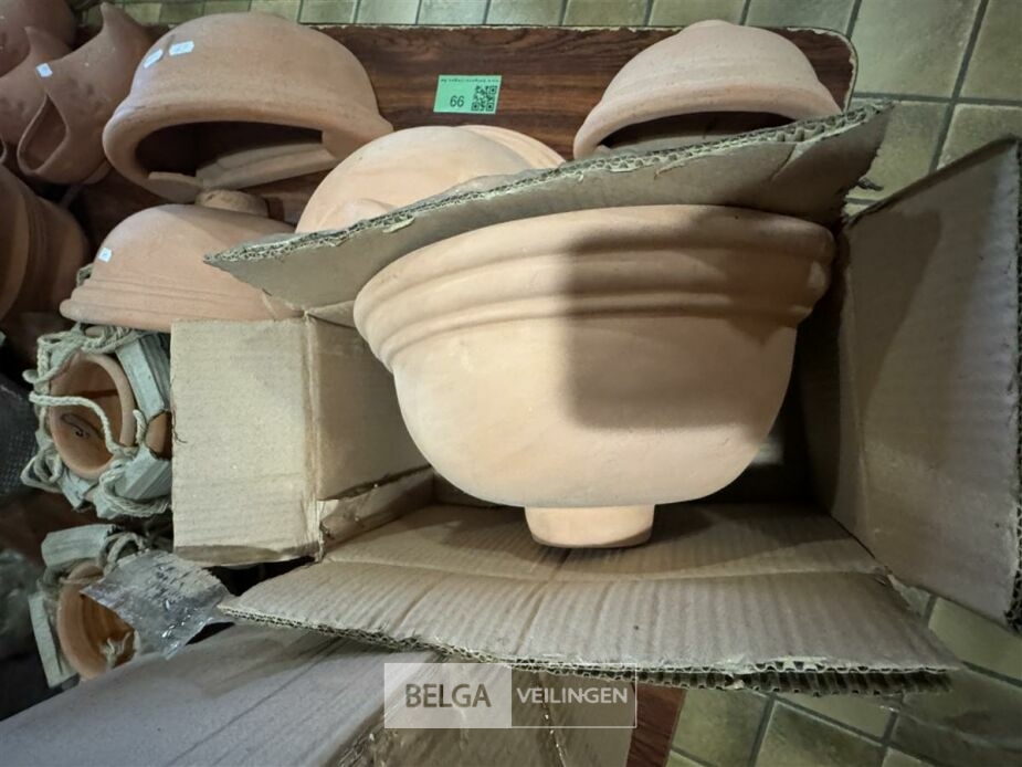 Partij terracotta bloempotten O.a.: 3 sets wandbloempotten bestaande uit 2 stuks ( 20 cm x 10 cm x 10 cm en 35 cm x 17 cm 17 cm) - hangbloempotten 2 sets betaande uit 2 stuks ( diameter 14 cm en 20 cm hoogte 10 cm en 15 cm)