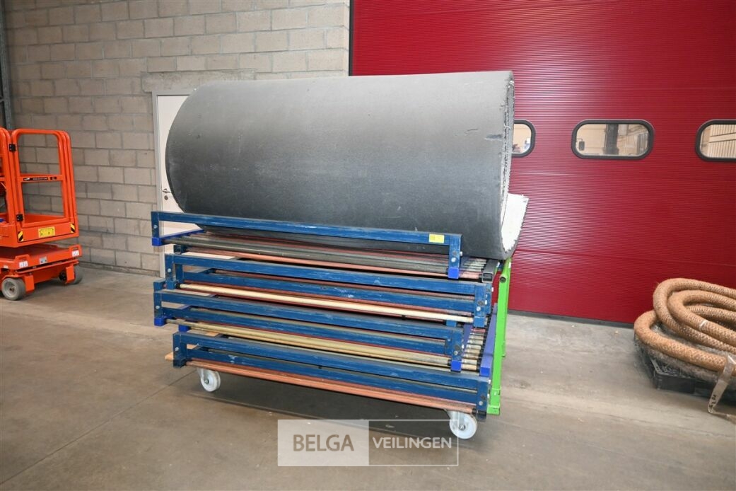 2 x rol tumbling/turnmatten (breedte 180cm) met circa 12 onderstellen (180x120cm) + kar