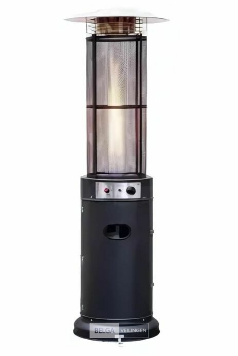 Patio Heater ( BYH-C PC ) Materiaal : Stainless Staal Basis : Ø 460 mm x 81 mm Inhoud tank : Ø 375 x 715 mm Vlamscherm : Ø 200 mm x hoogte 125 mm Reflector : 535 mm Quartz buis : 120 x 800 mm Totaal hoogte : 1800 mm Brandstof: Propaan, Butaangas